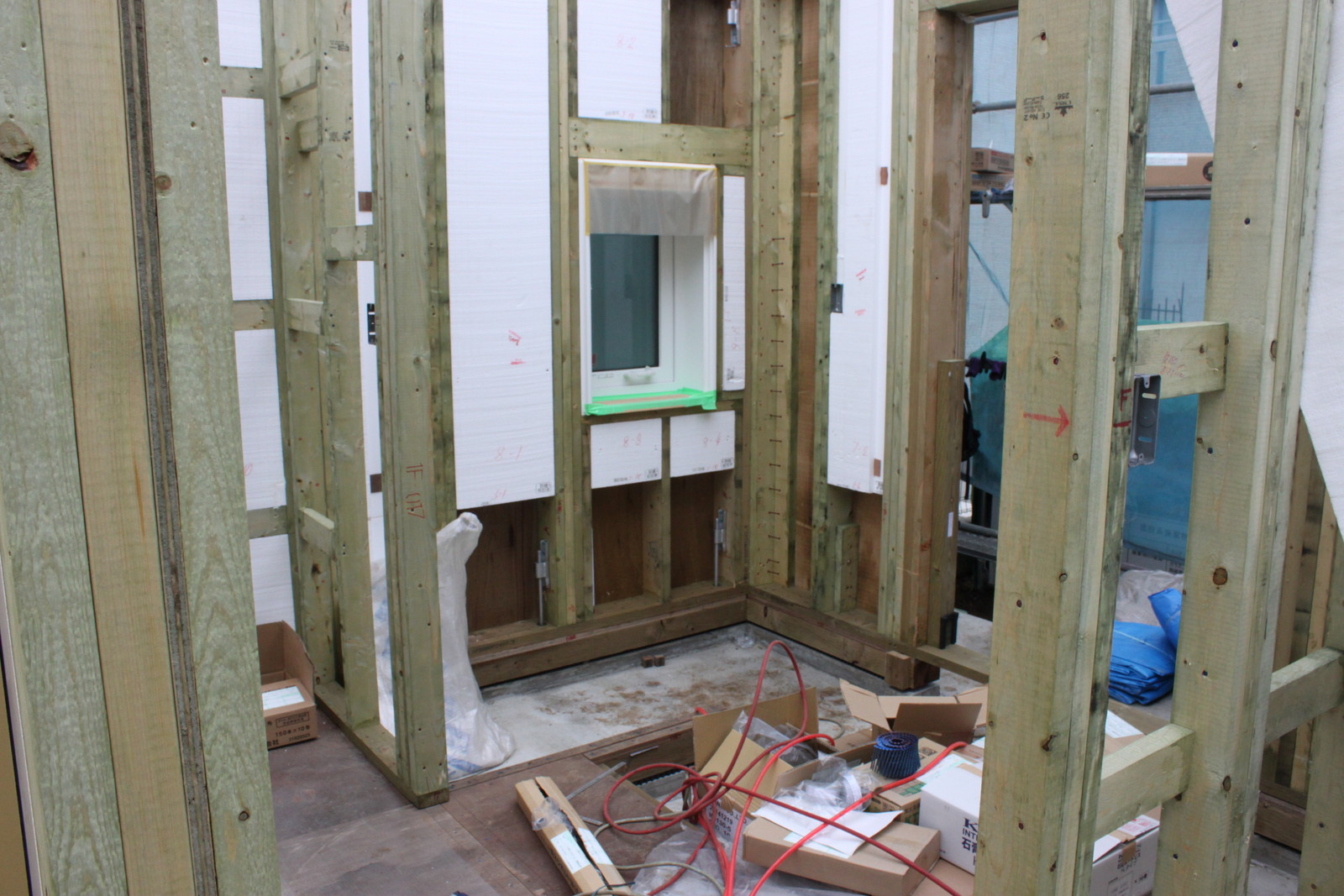 これはクローゼット。すっかり枠ができている。ここに扉などをつけるのだろうか。大きさは想像通り。しまう物を吟味しておこう。